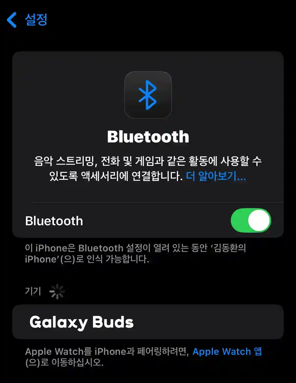 | 블루투스 활성화 | 아이폰의 블루투스를 켜야 합니다. |