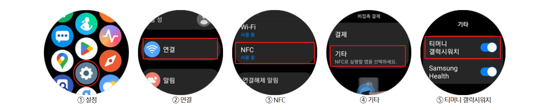 티머니 갤럭시 워치 앱 설정 및 결제 방식 선택