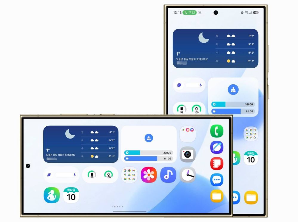 사용자 개성을 존중하는 One UI 7은 홈 화면의 앱 아이콘 및 위젯 크기를 조절할 수 있는 기능을 제공합니다.