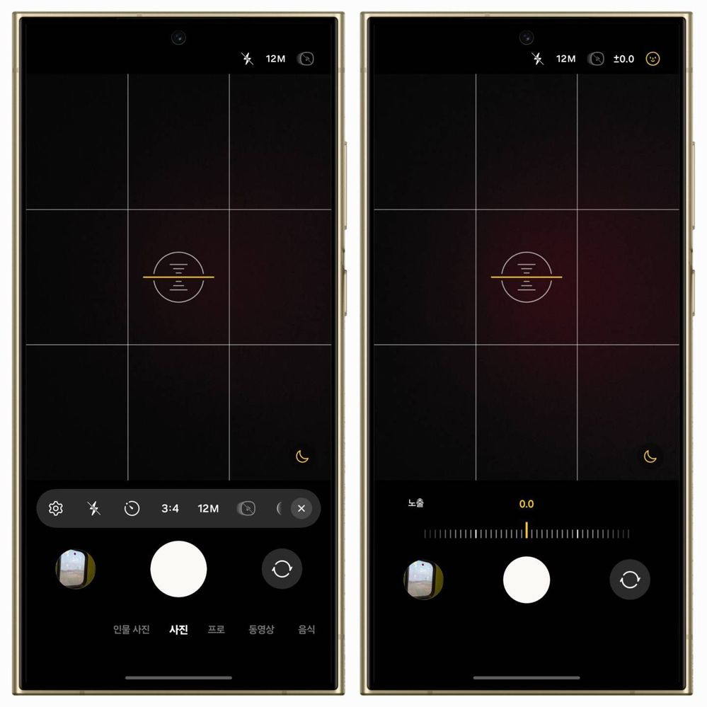 One UI 7의 카메라 앱은 사용자 편의를 고려한 변화를 보입니다. 기존 상단에 위치했던 설정 메뉴가 하단으로 이동하면서 한 손으로도 편리하게 조작할 수 있게 되었으며, 노출 조절 기능이 분리되어 초점을 다시 맞추더라도 설정값이 유지됩니다.