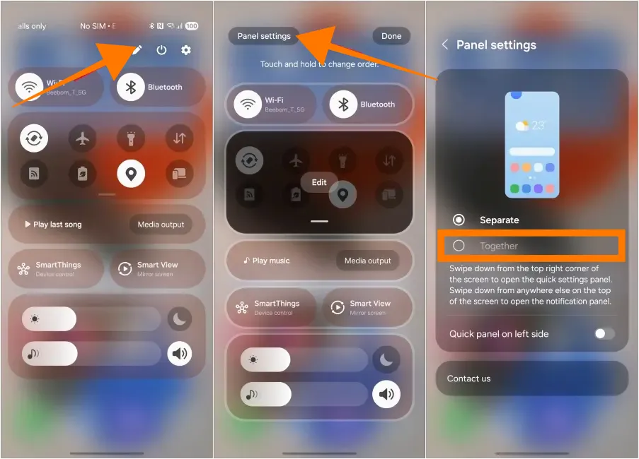 One UI 7 스타일의 두 페이지 빠른 설정으로 다시 변경하려면 위와 동일한 단계를 수행하고, 4단계에서 "분리"를 선택하면 됩니다.