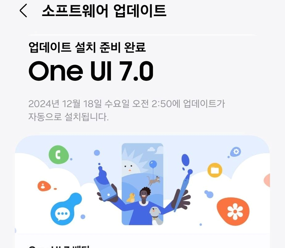 베타 프로그램 등록 후에는 다음과 같이 OneUI 7 베타 버전을 다운로드하고 설치할 수 있습니다.