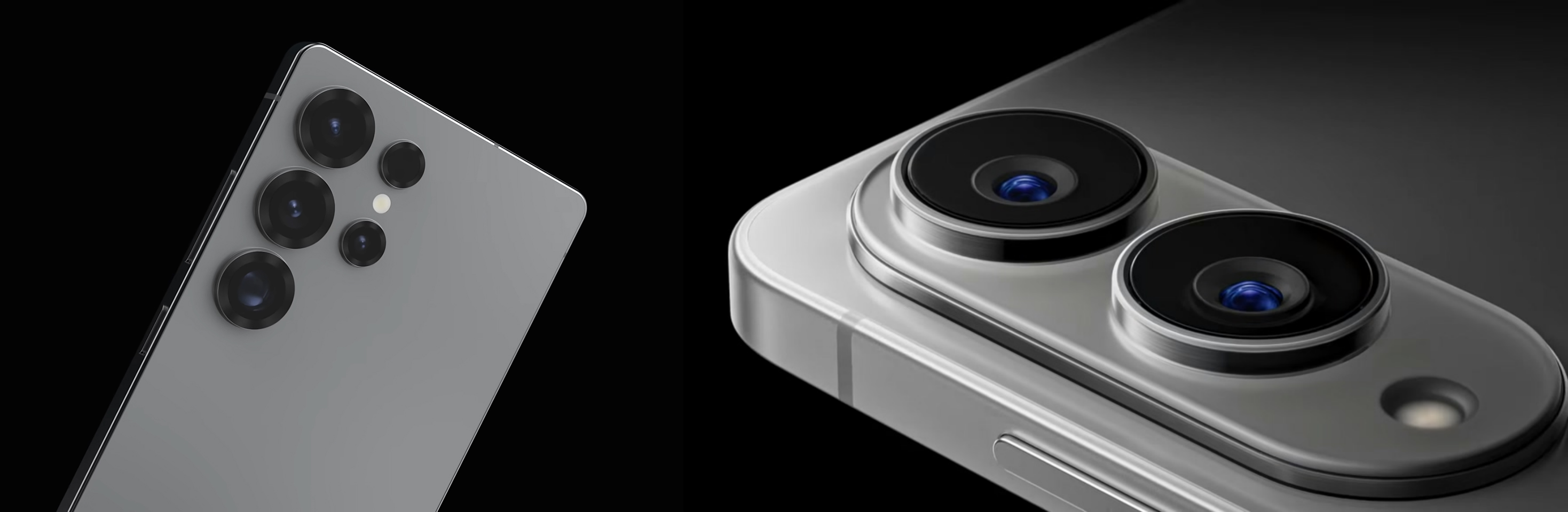 가장 큰 차이 중 하나는 카메라 구성입니다. S25 울트라는 광학 줌 2종을 포함한 쿼드 카메라, 엣지는 듀얼 카메라입니다.