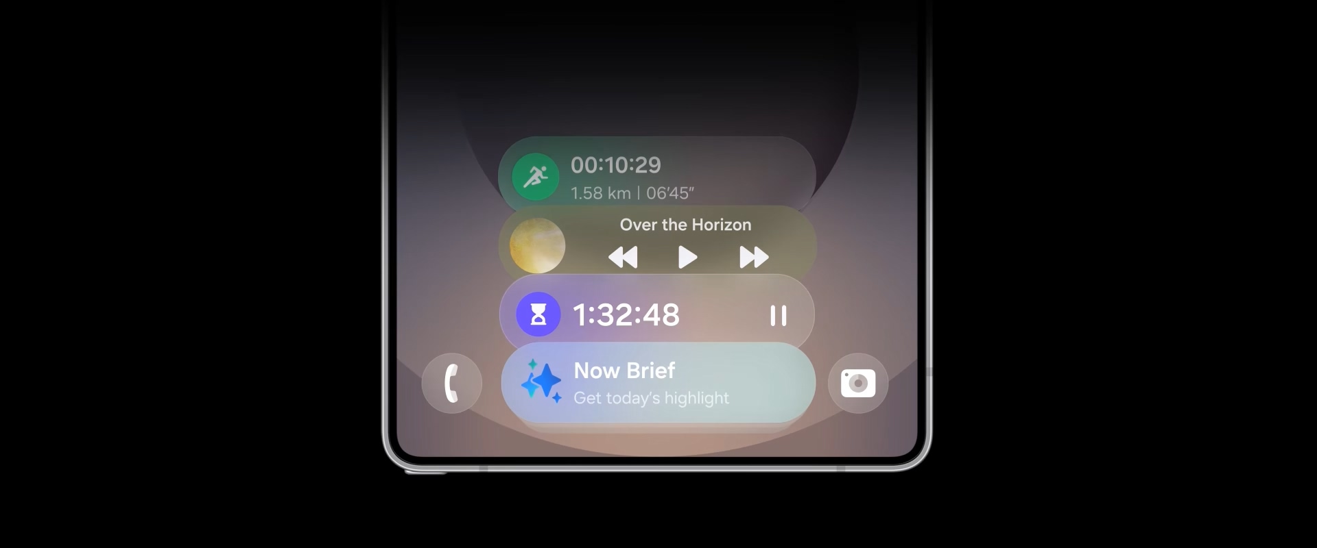 - 나우 바: 짧은 정보와 AI 기반 추천을 제공합니다. 스포츠 점수, 다음 회의까지의 길 안내, 카운트다운 타이머 등을 표시하며, 잠금 화면에도 나타납니다.