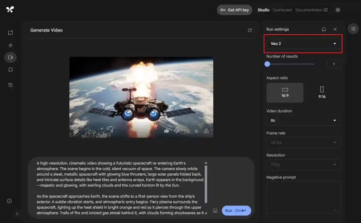 - 우측 패널에서 모델을 “Veo 2”로 선택