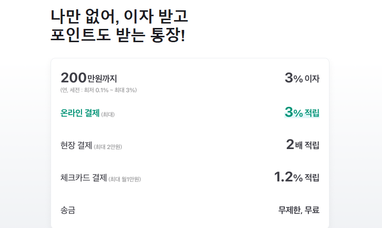 단, 우대금리는 매일 최종 잔액 중 200만원 이하 금액에 대해서만 적용됩니다.