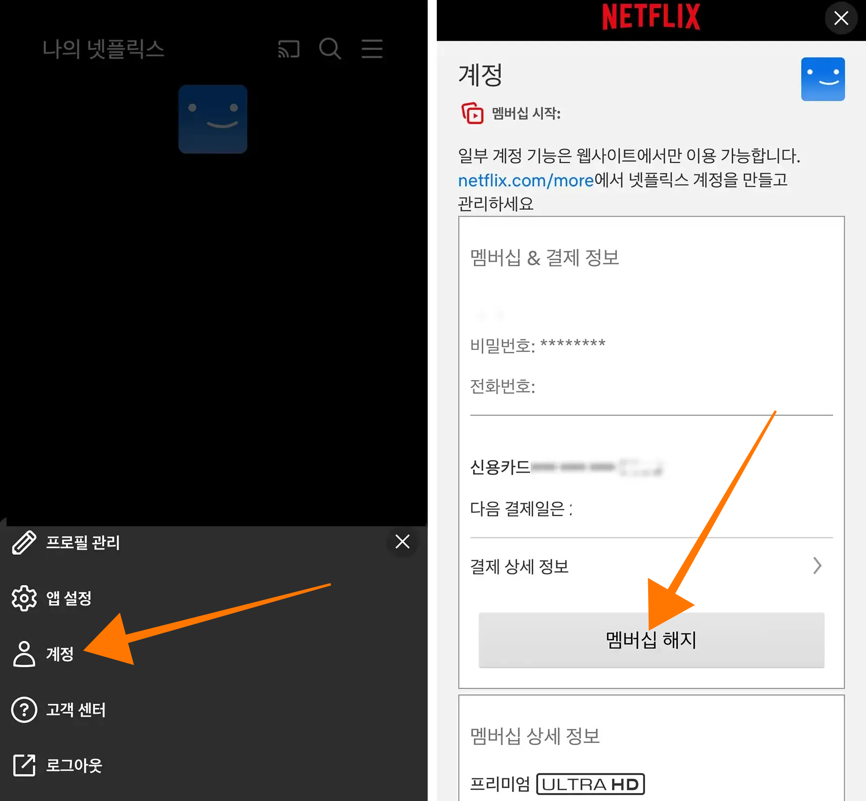 스마트폰(아이폰 또는 갤럭시 등)을 사용 중이라면, 넷플릭스 앱을 이용해 간단히 멤버십을 종료할 수 있습니다.