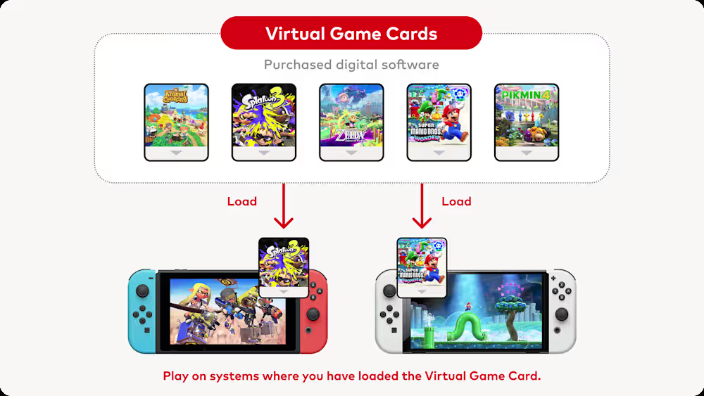 - 닌텐도 스위치 버추얼 게임 카드: 닌텐도 스위치 출시 8년 만에 디지털 게임을 더욱 쉽게 공유할 수 있는 버추얼 게임 카드 기능이 추가됩니다. 이 기능을 통해 다른 스위치 및 스위치 2 사용자에게 디지털 게임을 빌려주거나 공유할 수 있으며, 4월 시스템 소프트웨어 업데이트를 통해 적용될 예정입니다.