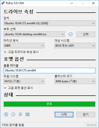 1. Rufus를 실행한 후 USB를 연결합니다.