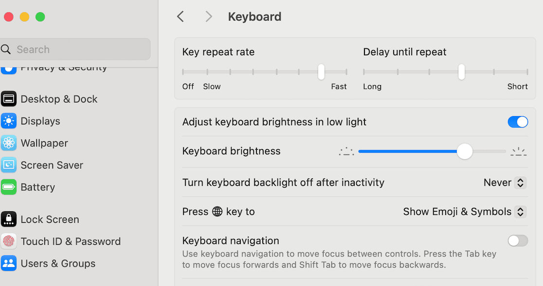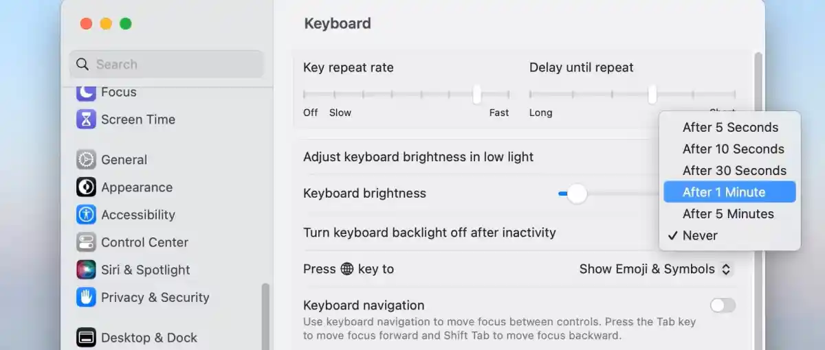 macOS에서는 키보드 백라이트 밝기를 시스템 설정을 통해 쉽게 조절할 수 있습니다. 다음은 설정 진입 방법입니다.
