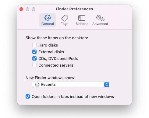 물리적인 연결에 이상이 없다면, 맥 Finder 설정을 확인하여 외장 디스크 표시 설정이 활성화되어 있는지 확인합니다.