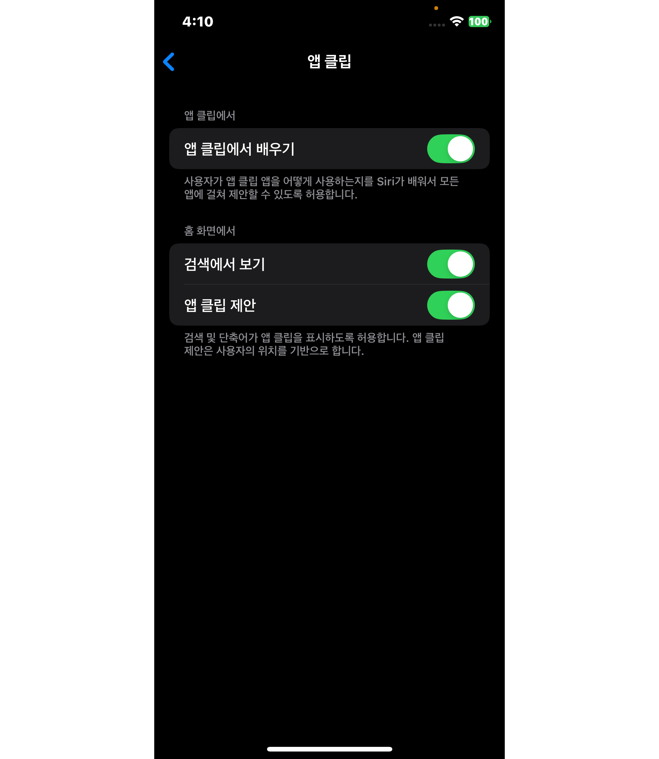 앱 클립에서도 시리 제안을 끌 수 있습니다. 필요 없는 추천을 줄이고 깔끔한 환경을 만들어보세요.