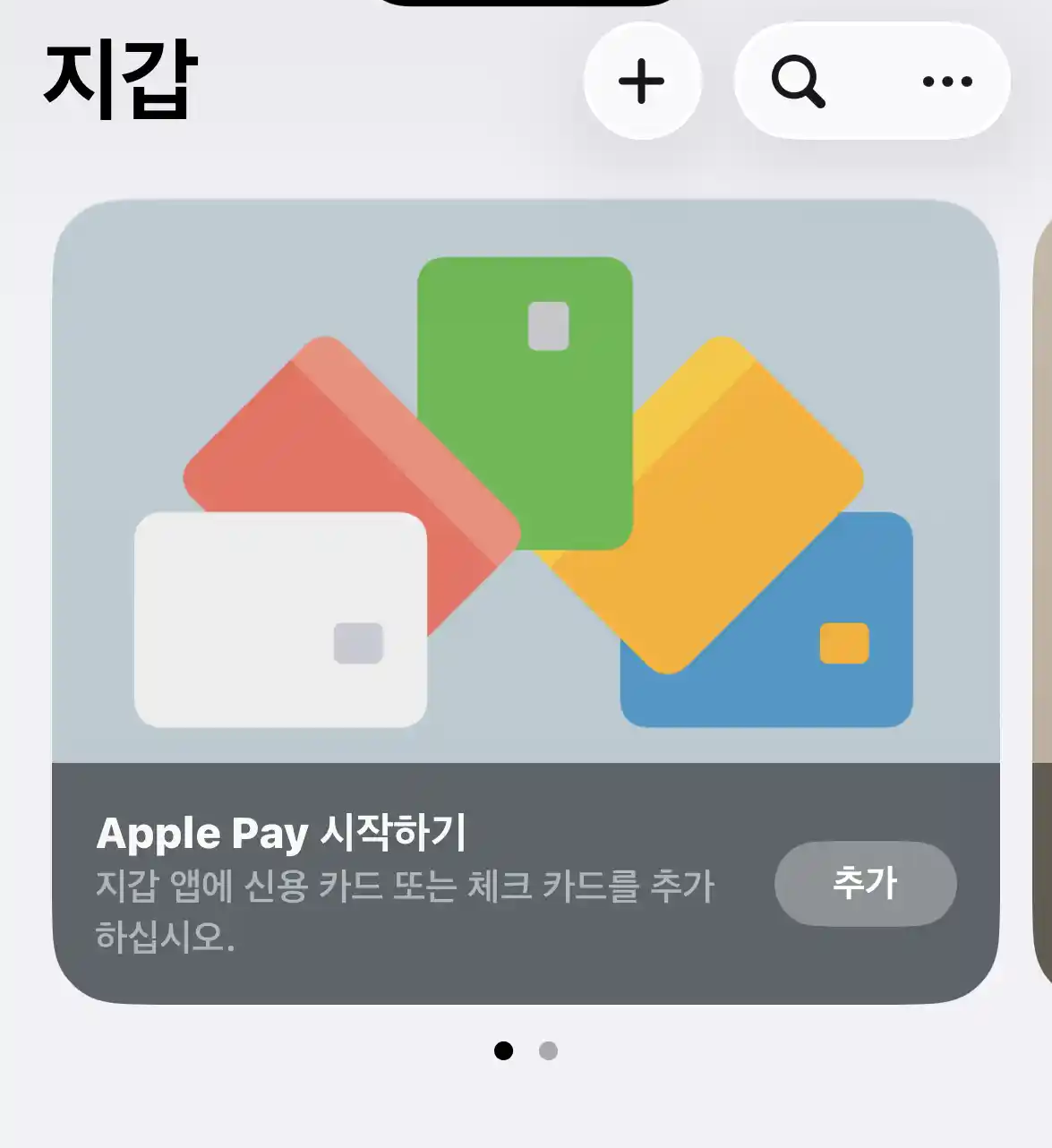 앱 우측 상단의 ‘+’ 버튼을 누릅니다. 카드 추가 화면이 표시됩니다.