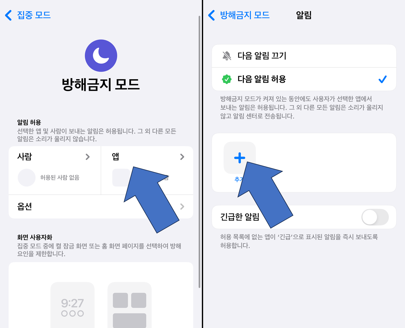 아이폰 집중 모드 중 전화/문자/카카오톡 알림 받는 법 (허용 설정)