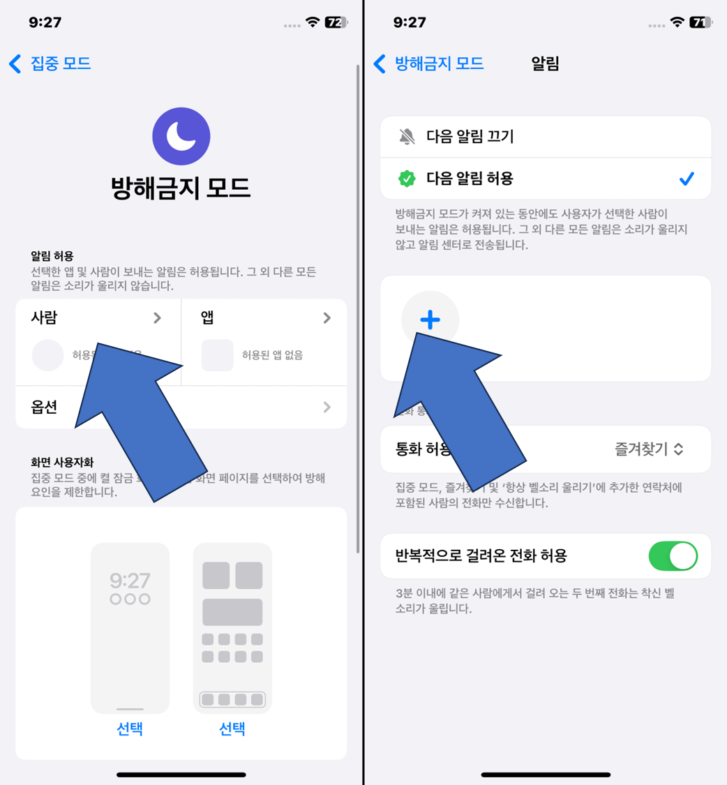 아이폰 집중 모드 중 전화/문자/카카오톡 알림 받는 법 (허용 설정)