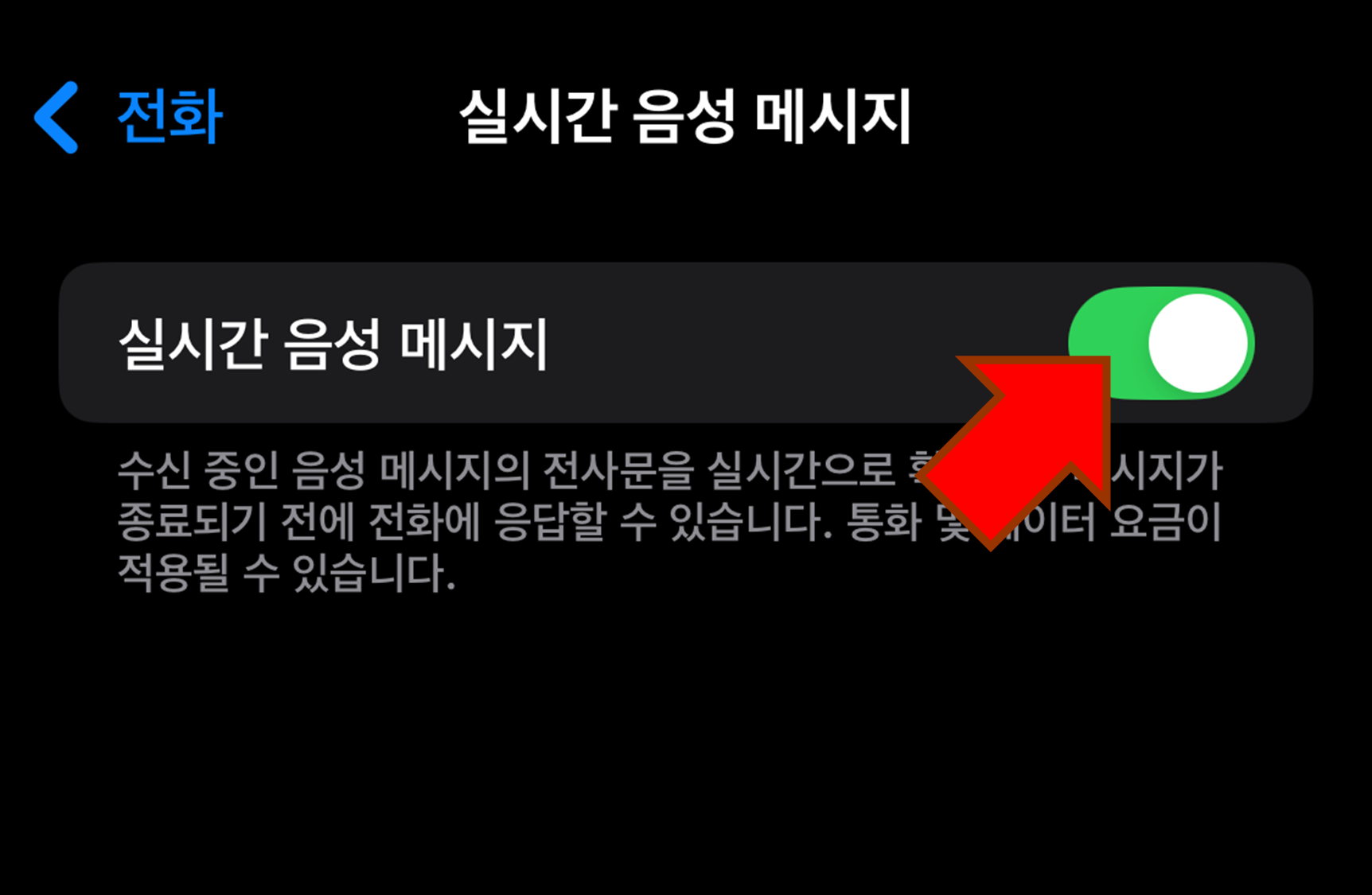 - 실시간 음성 메시지 항목을 찾아 스위치를 끕니다.