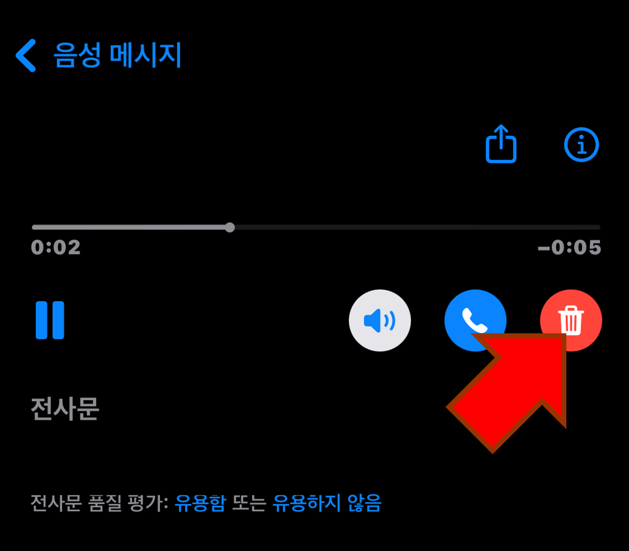 - 개별 메시지를 선택한 후 '삭제' 또는 휴지통 아이콘을 누릅니다.