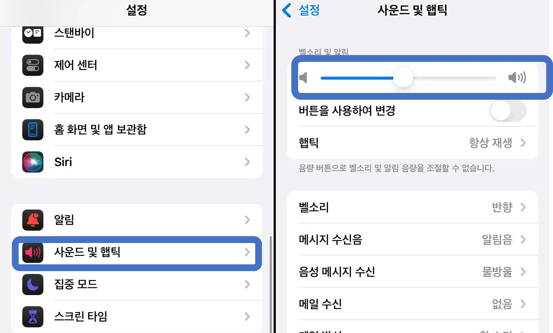 아이폰 알람 소리 크기를 정상적으로 유지하기 위해서는 다음 설정을 점검해야 합니다.