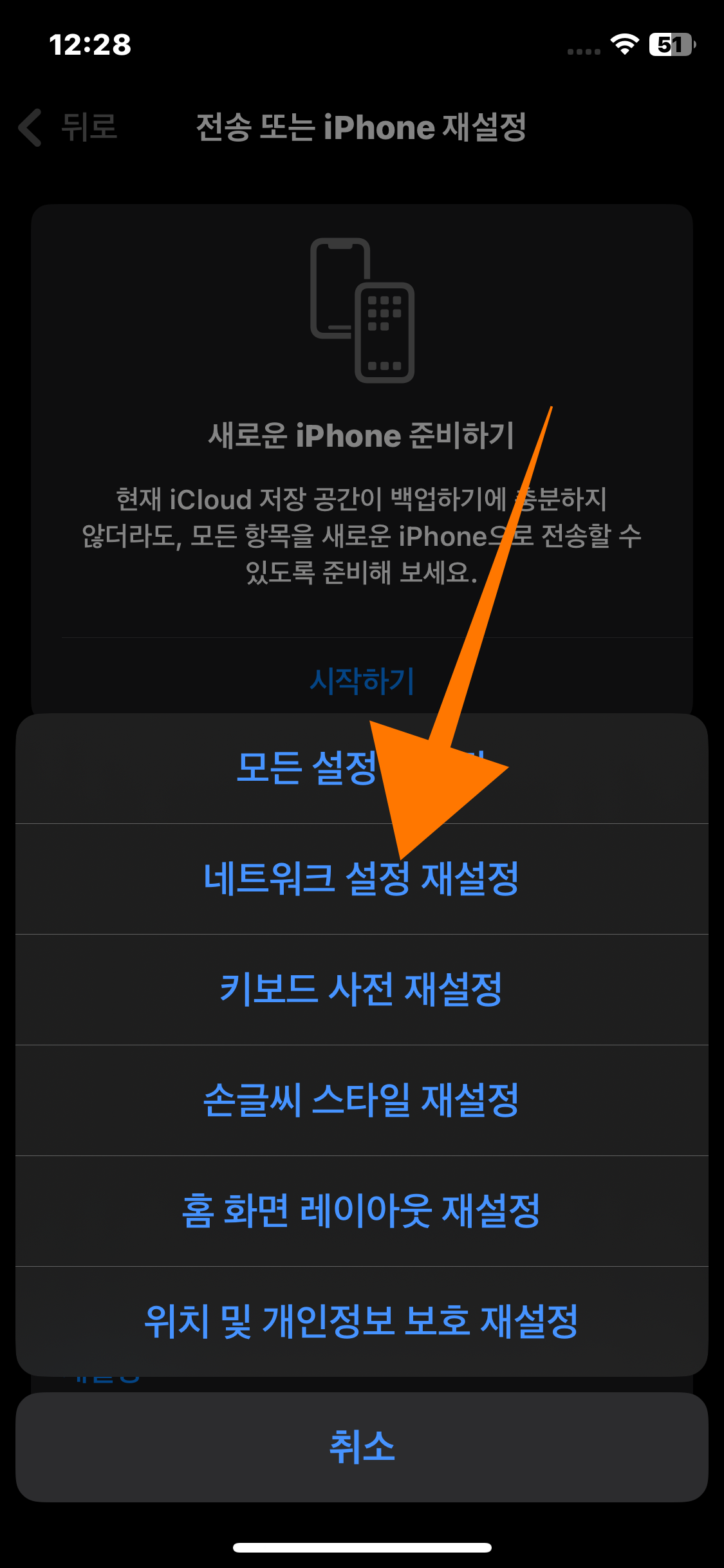 ※ 이 과정에서 저장된 Wi-Fi 비밀번호, VPN 설정 등이 삭제됩니다.