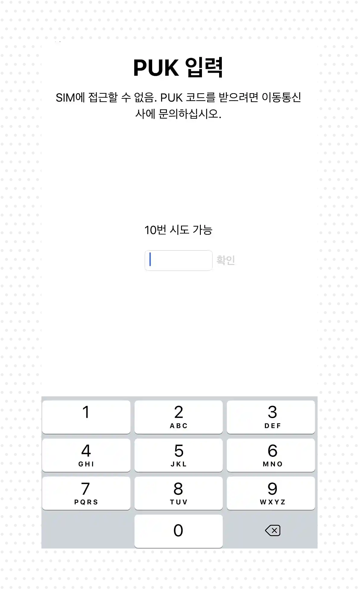 - 아이폰 화면에 "PUK 코드 입력" 요청이 나타나면 정확한 코드를 입력합니다.