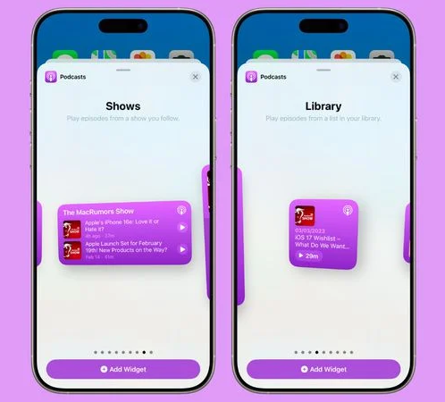 아이폰 또는 아이패드 홈 화면에 추가할 수 있는 새로운 ‘보관함’ 및 ‘쇼’ 위젯이 추가되었습니다. ‘보관함’ 위젯은 저장된 콘텐츠를, ‘쇼’ 위젯은 사용자가 구독 중인 쇼를 표시합니다. 팟캐스트 앱 내 프로필 사진을 탭하면 팟캐스트 설정 및 알림 설정 옵션을 이용할 수 있습니다.