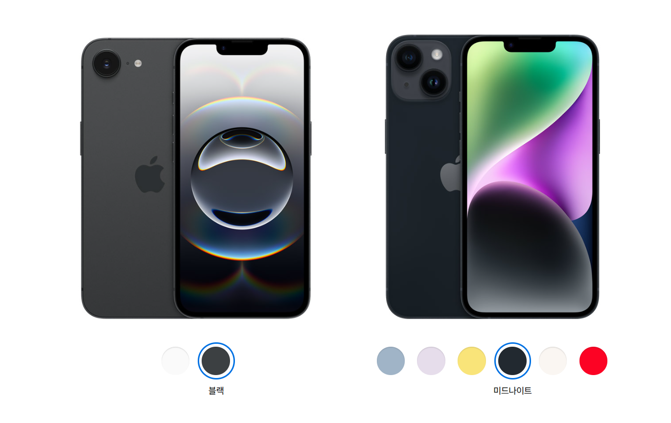 아이폰 14는 6가지 색상으로 출시되어 선택의 폭이 넓습니다. 반면 아이폰 16e는 두 가지 색상으로 제한됩니다. 색상을 중요하게 생각하는 여러분은 아이폰 14가 더 매력적일 수 있습니다.