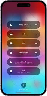 • 집중 모드: 제어 센터에서 사람 모양 아이콘을 길게 눌러 집중 모드를 설정하거나 해제할 수 있습니다.