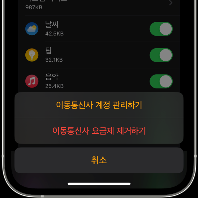 - 다음으로 “이동통신사 요금제 제거”를 탭합니다.