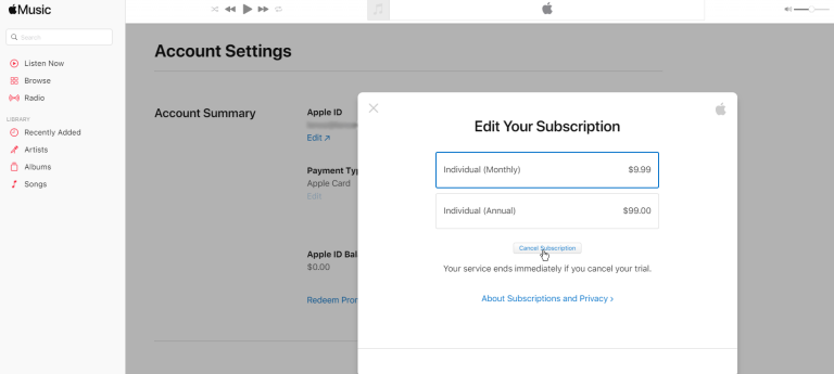 윈도우 PC에서 애플 뮤직 구독 취소 (iTunes 사용)