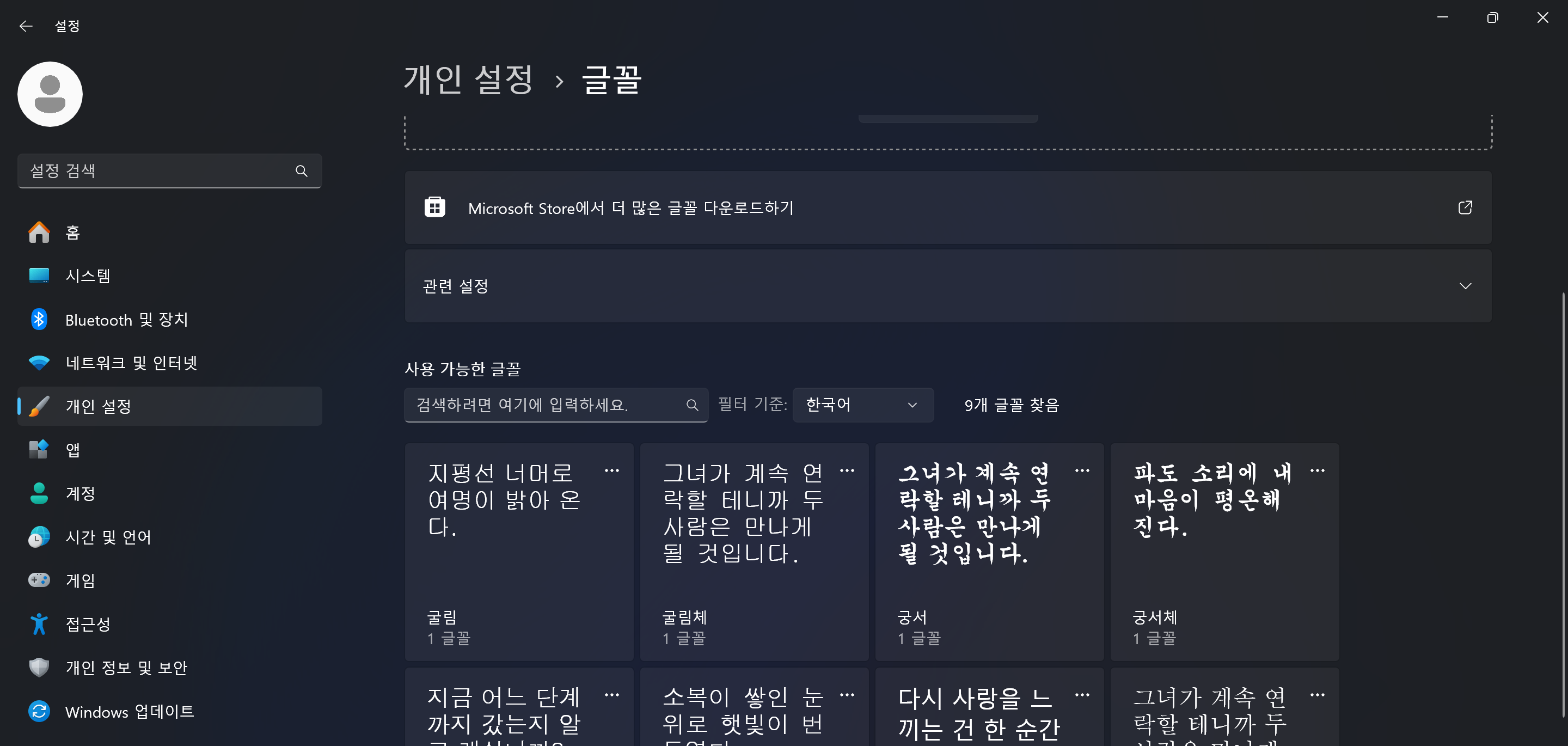 윈도우11 글꼴 설치 방법 및 무료 폰트 다운로드 정보