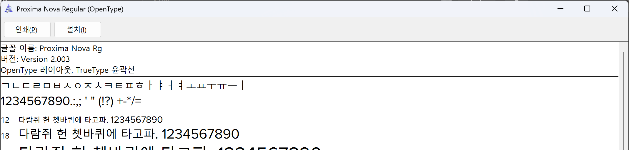 - 폴더 내 .ttf 또는 .otf 파일 더블 클릭