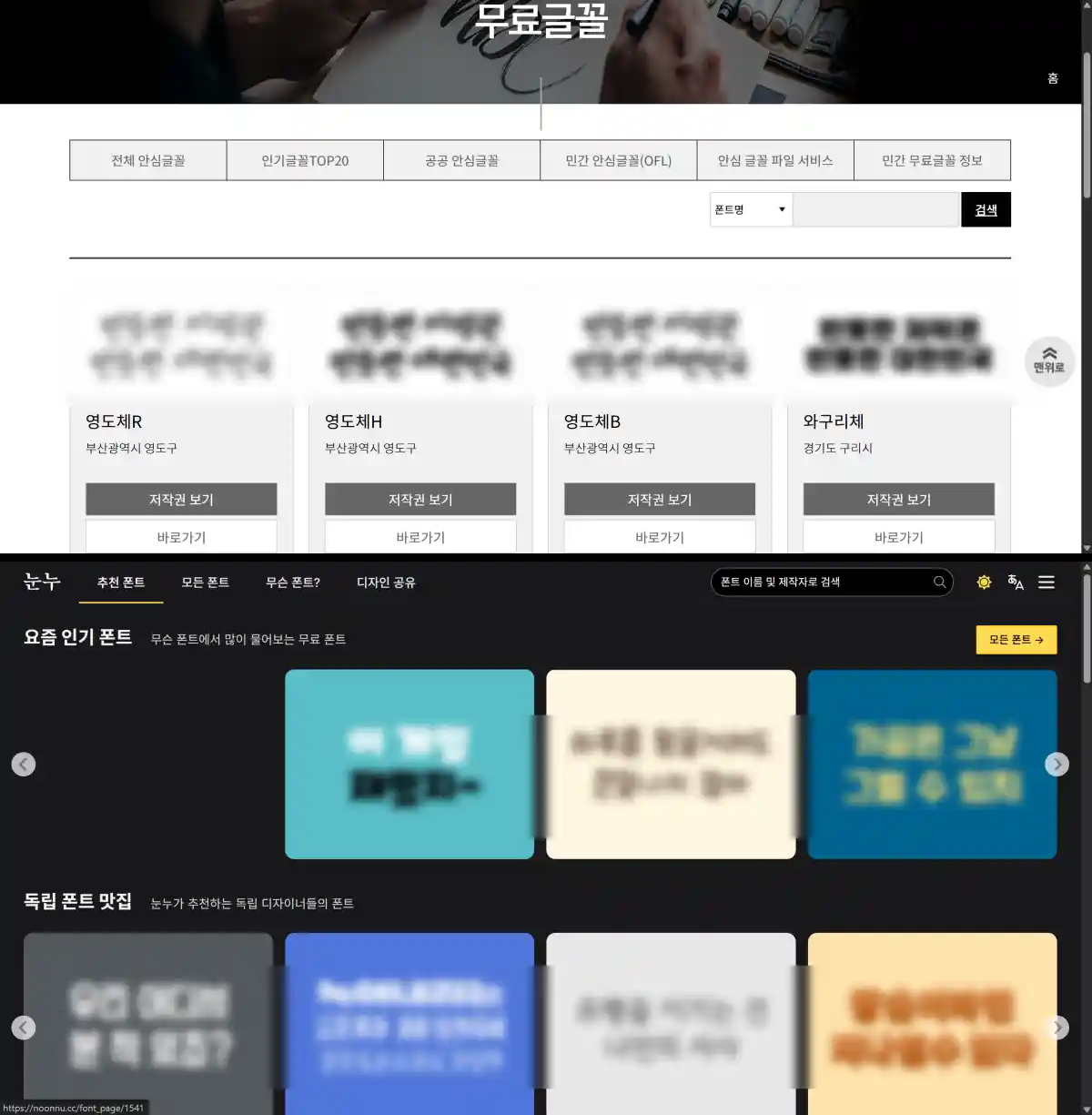 글꼴을 구매하지 않고도 정식으로 사용할 수 있는 무료 폰트 사이트가 다수 존재합니다. 이 중에서도 대표적인 사이트 2곳을 소개합니다.