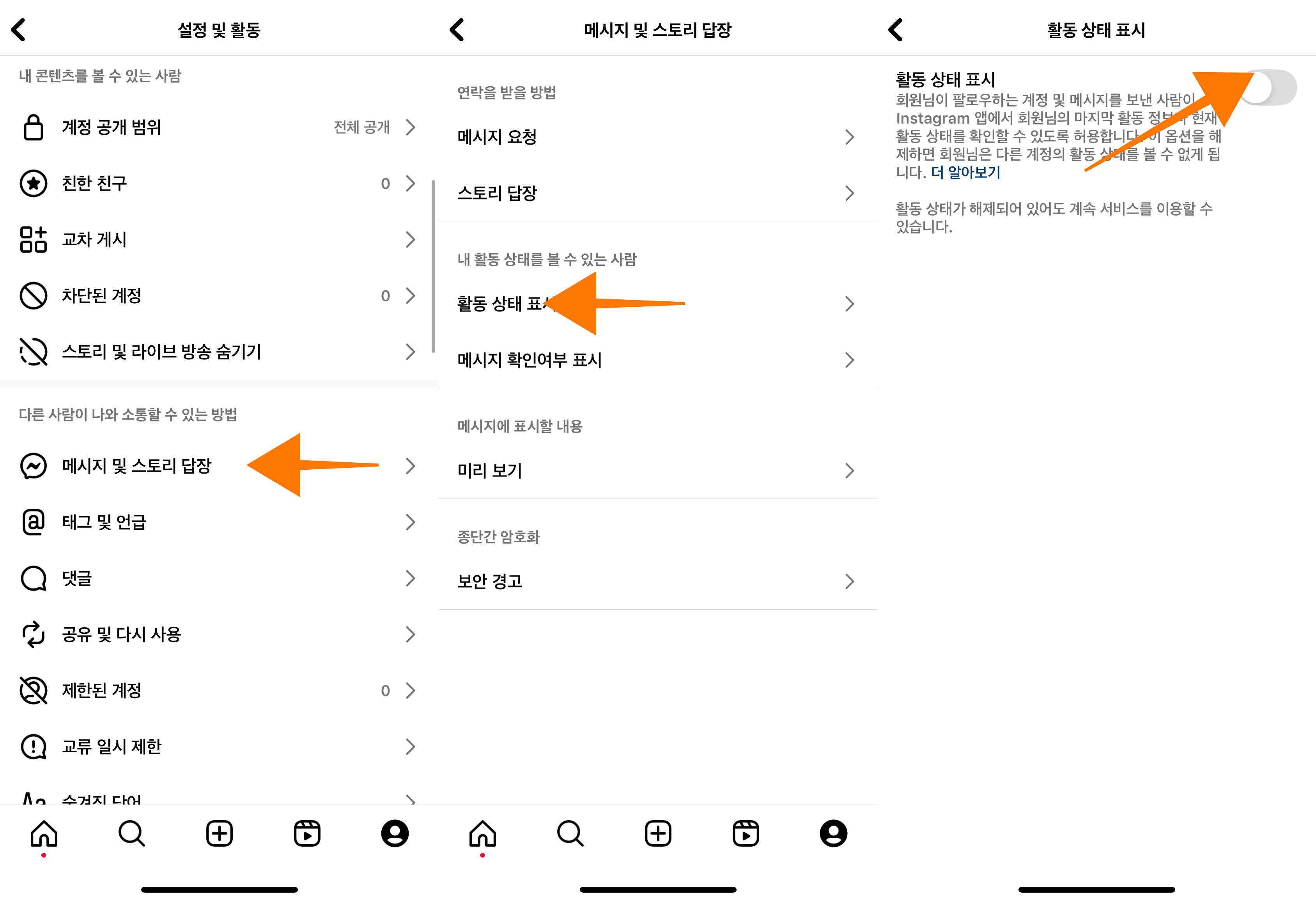 2. 인스타그램 활동 상태 끄기: 아이폰 & 갤럭시