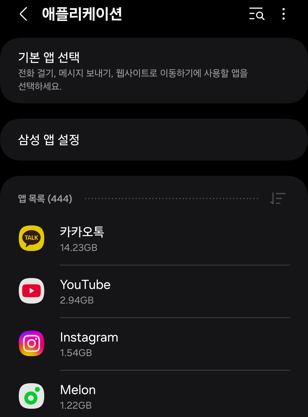 - 갤럭시: 설정 → 배터리 및 디바이스 케어 → 저장공간 → 앱스