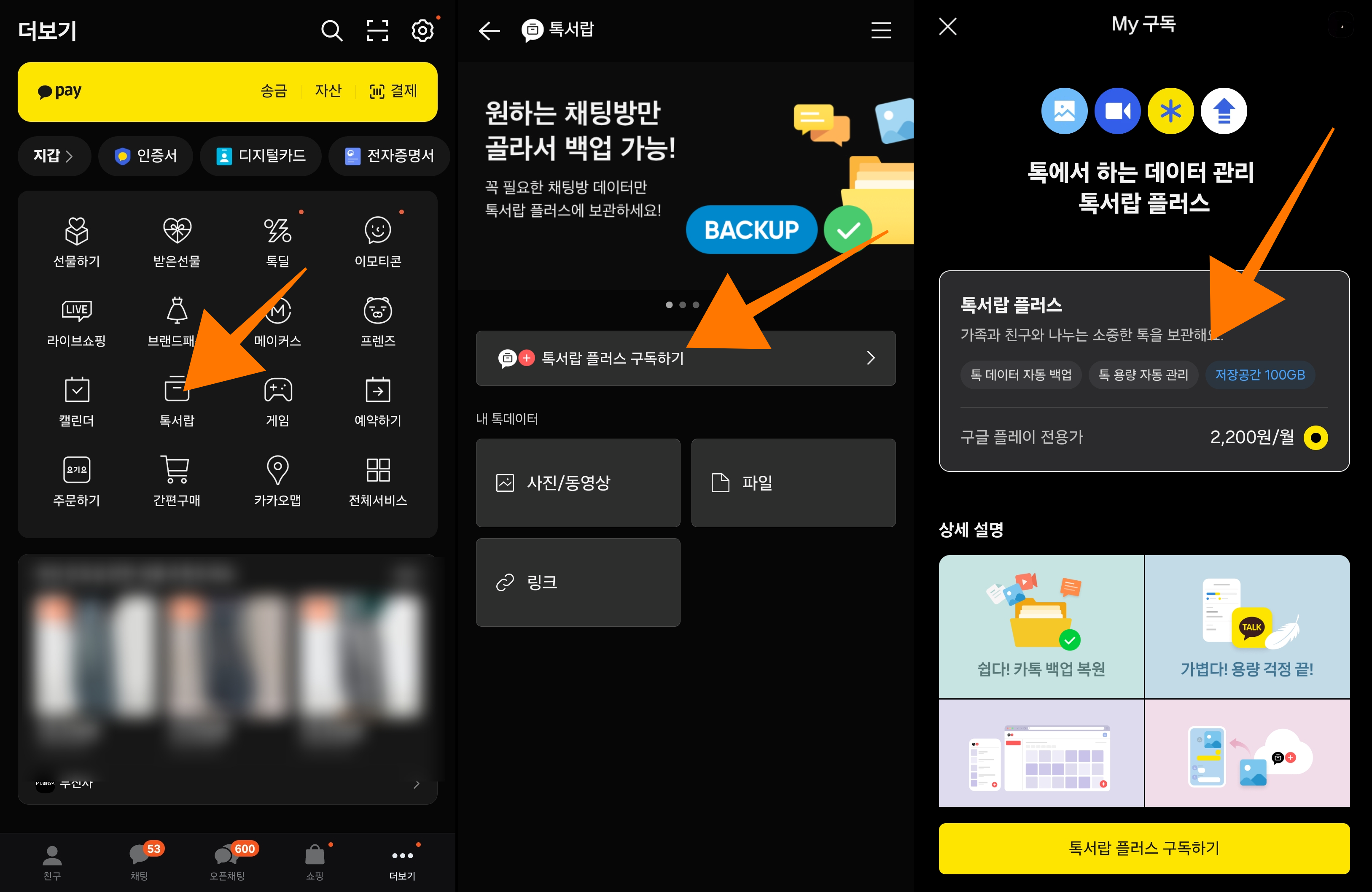 톡서랍 플러스 구독 방법은 간단합니다.