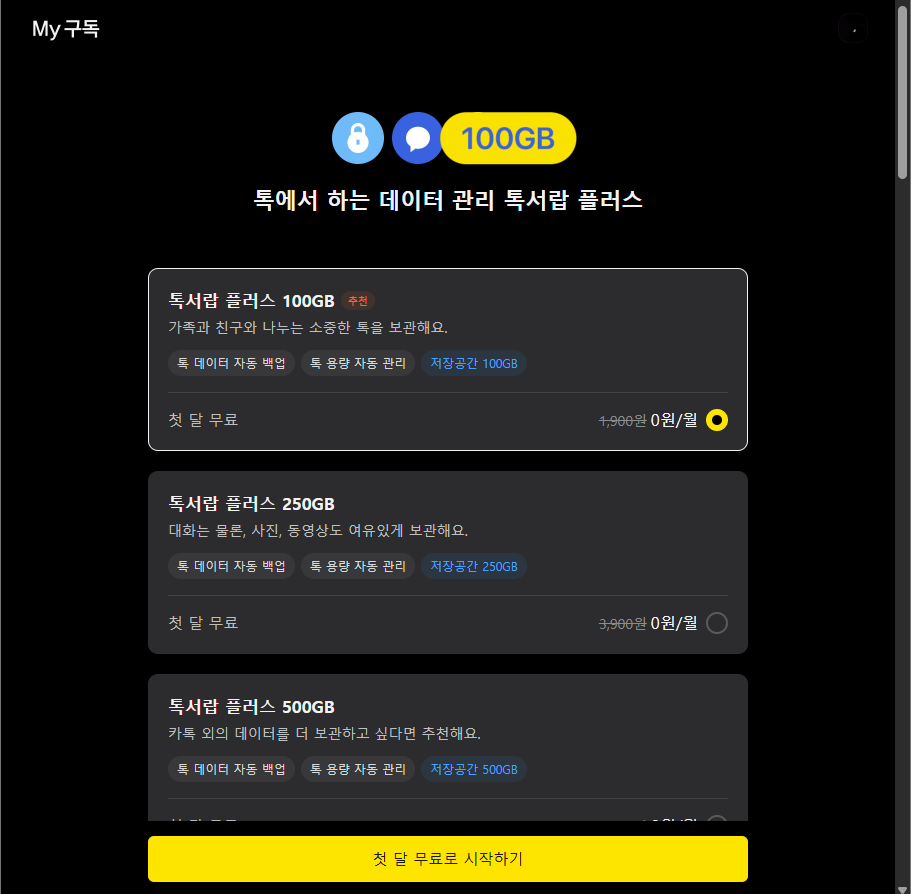 2. 톡서랍 플러스 가격 및 구독 방법