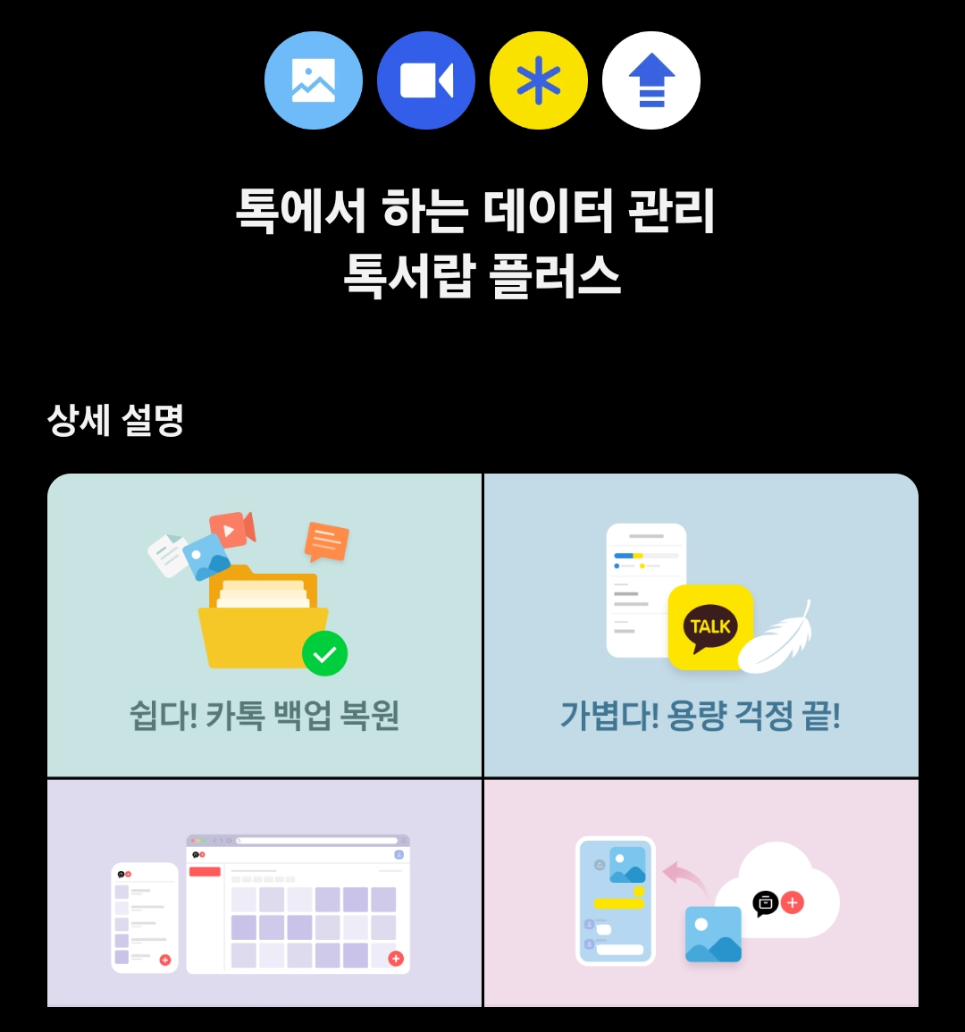 톡서랍 플러스 PC 버전 주요 기능:
