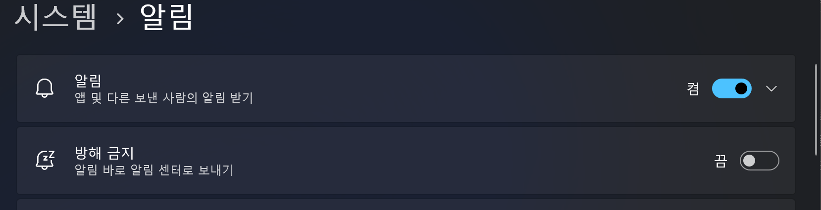 - 만약 특정 앱의 알림만 선택적으로 차단하고 싶다면, 아래 목록에서 앱을 찾아 개별적으로 설정할 수 있습니다.