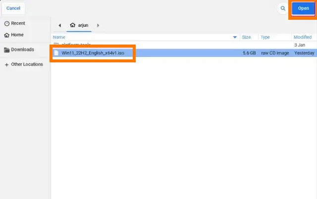 - 윈도우 11 ISO 파일 이동: 파일 앱을 사용하여 다운로드한 윈도우 11 ISO 파일을 "리눅스 파일" 섹션으로 이동합니다.