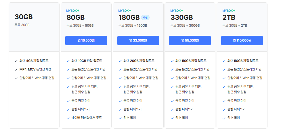 네이버 계정을 가진 사용자라면 네이버 마이박스(MYBOX)라는 클라우드 저장소 서비스를 무료로 이용할 수 있습니다. 기본적으로 30GB의 넉넉한 저장 공간을 제공하며, 네이버플러스 멤버십 가입자는 80GB까지 확장하여 사용할 수 있습니다.