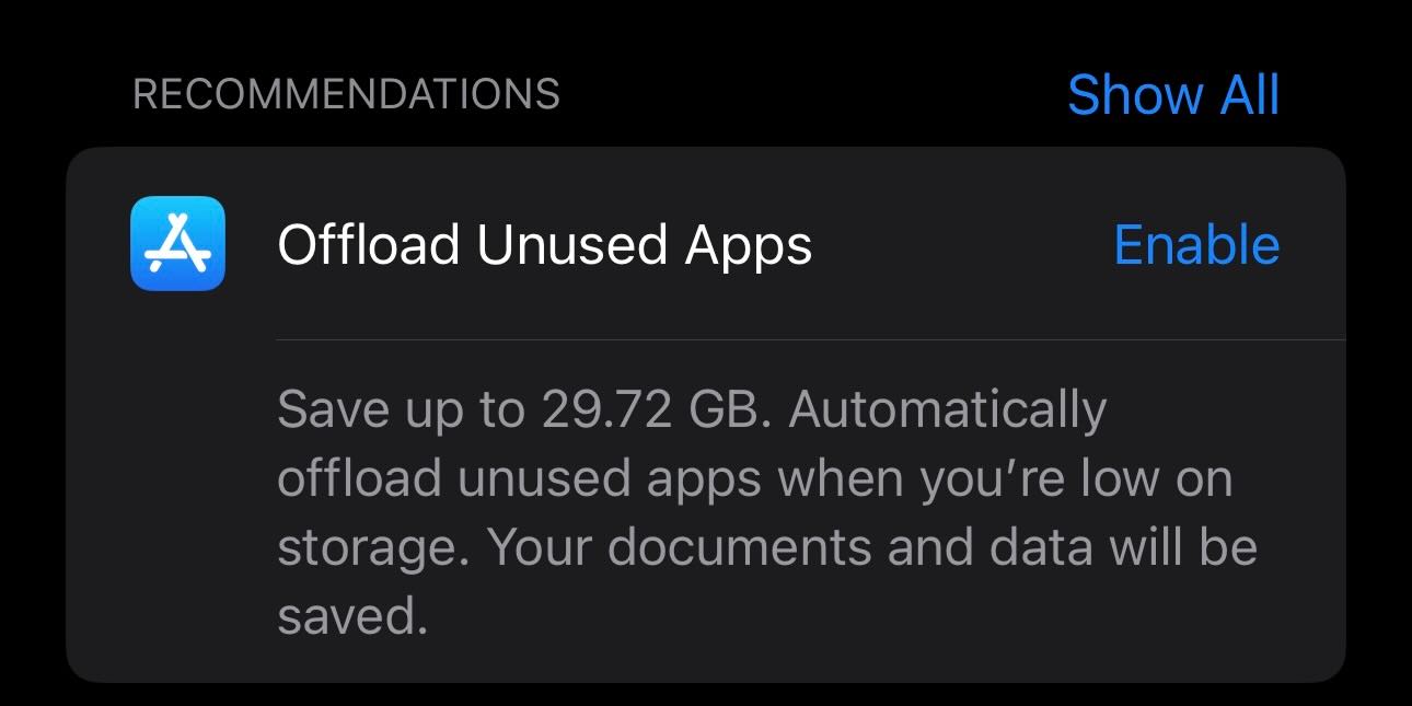 - 다시 한번 "앱 오프로드" 버튼을 탭하여 변경 사항을 적용합니다.