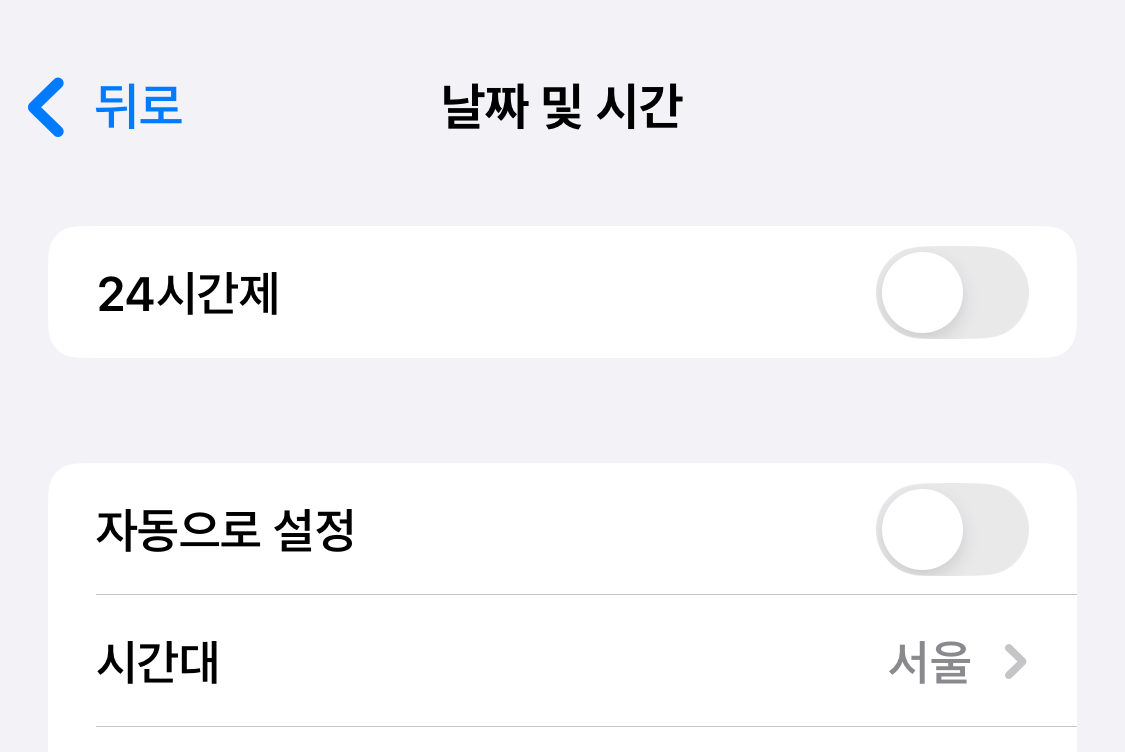 설정 > 일반 > 날짜 및 시간에서 자동 설정 기능이 꺼져 있다면, 시간 동기화 오류로 인해 iMessage 로그인이 실패할 수 있습니다.