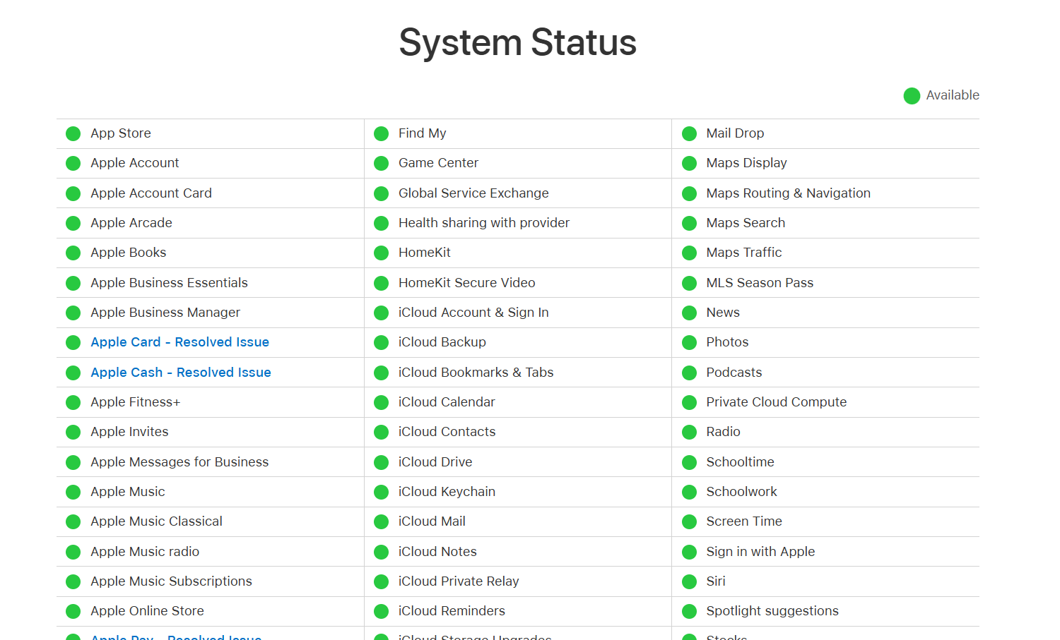 애플 공식 지원 사이트(https://www.apple.com/support/systemstatus/)에서%EC%97%90%EC%84%9C) iMessage 서버에 이상이 있는지 확인합니다. 서버 장애일 경우에는 별도의 조치를 취하지 않아도 복구될 때까지 기다리는 것이 최선입니다.